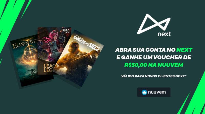 NotíciasNintendoPCPlayStationXbox Nuuvem dá voucher de R$ 50,00 e sorteia R$ 20.000,00 em parceria com o banco next 20 de junho de 2022 Álvaro Saluan next, Nintendo Switch, Nuuvem, PC, PlayStation 4, PlayStation 5, Steam, Xbox One, Xbox Series X|S